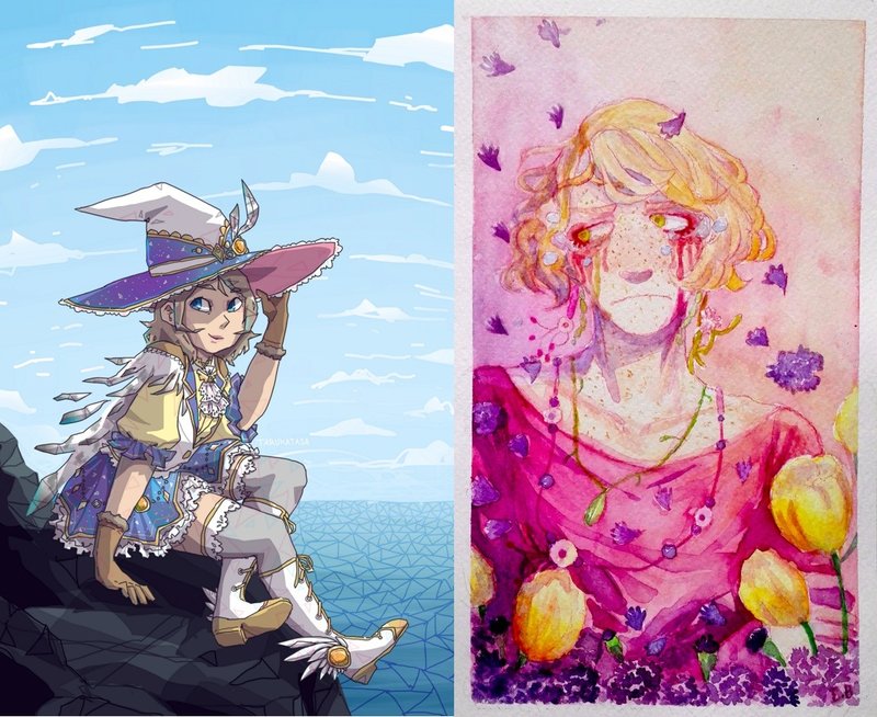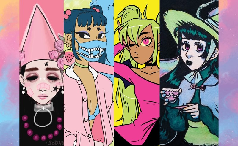 Myynnissä värikästä originaalia että fanitaidetta printtien, postikorttien ja tietysti tarrojen muodossa. Aihe vaihtelee noidista, puputytöistä ja demoneista animeen, videopeleihin ja glitterpilviin. Jos toivomaasi hahmoa ei joukosta löydy, teen mahdollisesti tilaustöitä paikan päällä - tai jo sitä ennen!