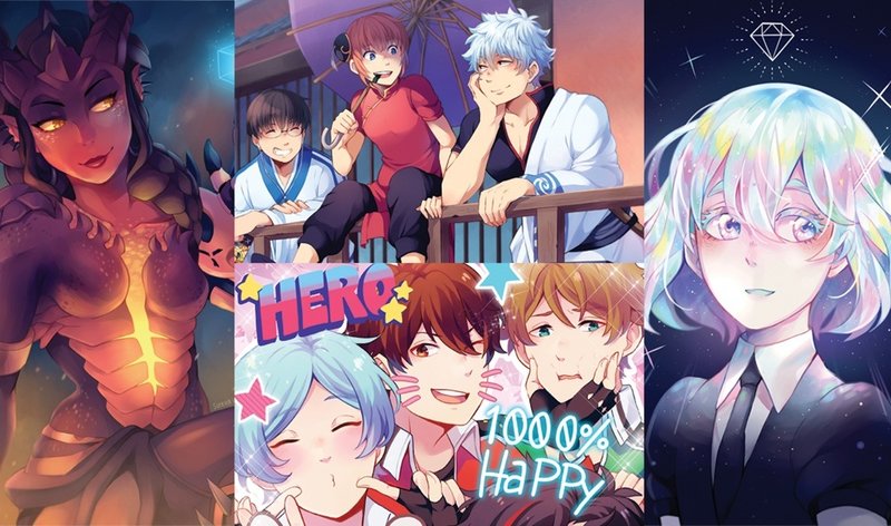 Pöydälläni on tarjolla pääasiassa fanarttia animeista ja peleistä printtien, tarrojen ja charmien muodossa, aiheina mm. Gintama, Houseki no Kuni, Golden Kamuy, Overwatch, Ensemble Stars sekä monia muita! Myyn lisäksi myös originaaleja vihkoja yöperhosprintillä.