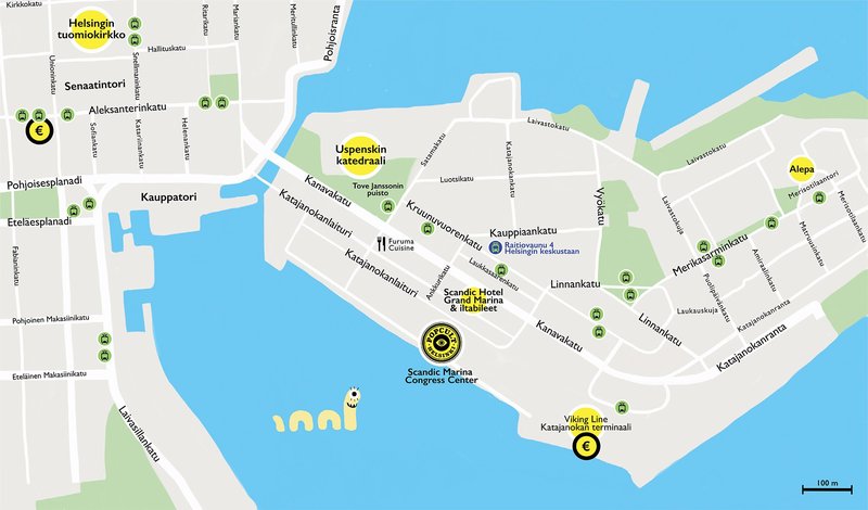 Muista juoda! Vettä saa vesipisteistä, vessoista ja ravintolasta. Muista myös syödä! Marina Congress Centerin oma ravintola Marine löytyy rakennuksen toisesta kerroksesta.