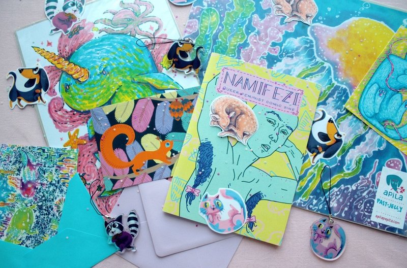 Apila Pepita Miettinen on helsinkiläinen kuvittaja ja sarjakuvataiteilija. Häneltä on myynnissä värikkäitä ja söpöjä eläinaiheisia tarroja, postikortteja ja printtejä. Apilalla myynnissä myös sarjakuvia, jotka käsittelevät mielenterveyttä, feminismiä ja muita rankkoja aiheita värikkäin ja eläväisin kuvin.