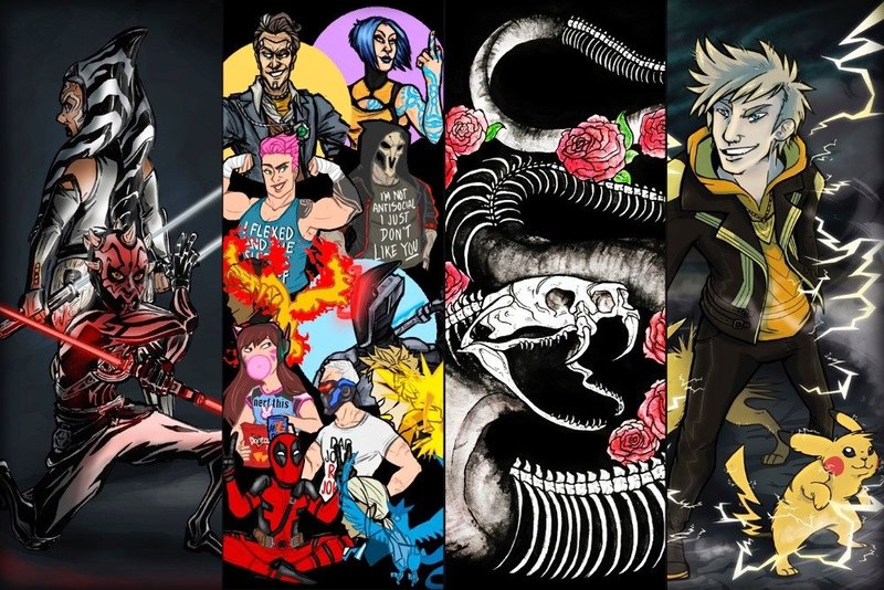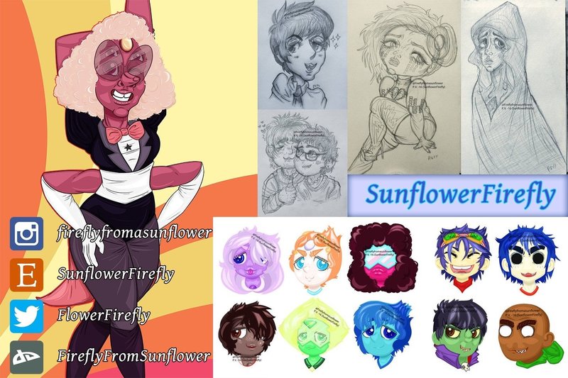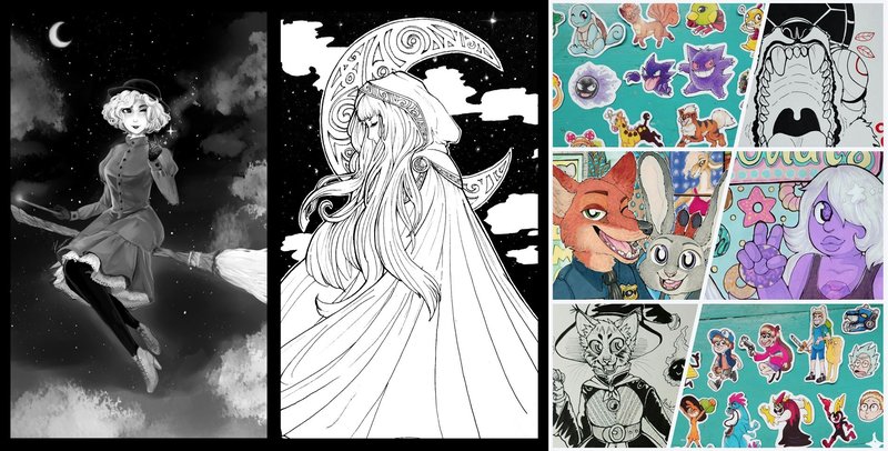 Tarjoan monipuolisen valikoiman fanitaidetta useista eri aiheista kuten piirretyistä (esim. Steven Universe, Rick and Morty, Monster High), bändeistä (esim. The Beatles, Gorillaz, Studio Killers) ja animeista (esim. Pokemon). Myyn esimerkiksi A5, A4, A3 printtejä, tarroja, magneetteja, käsitöitä kuten patalappuja eri hahmoista, sekä originaaleja tussitöitä ja luonnoksia. Teen myös paikanpäällä luonnostilaustöitä.