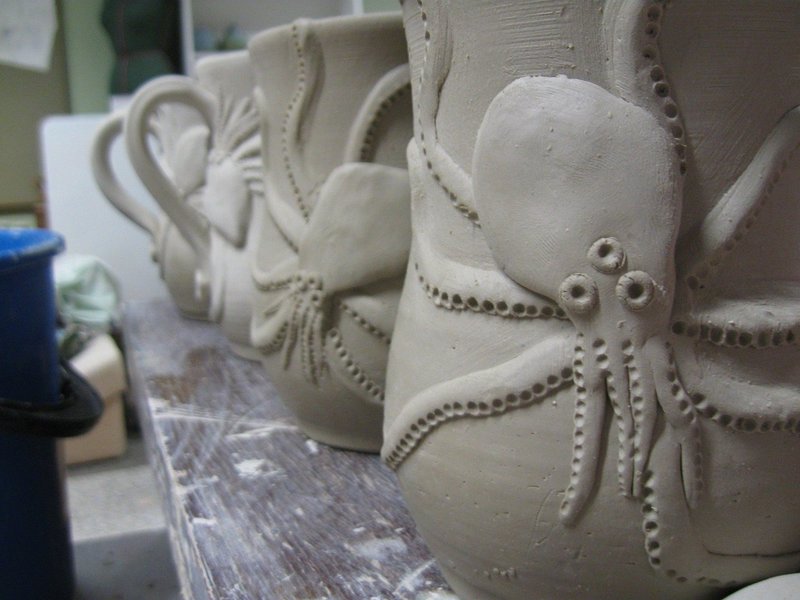 Elintarviketurvallista, käsintehtyä keramiikkaa. Isoja teekuppeja, Hilpeitä Esi-isiä, Pöllöjä, Mustekaloja ja Mereneitoja! Lempeitä Lankamonstereita!
