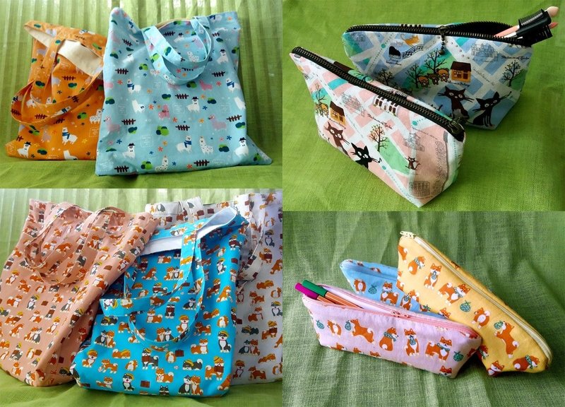 Myyn hauskoja ja hyödyllisiä käsitöitä, mm. kasseja, penaaleja, pussukoita, pinssejä ja magneetteja. Kankaiden kuoseissa seikkailevat mm. Shiba Inut, alpakat, kissat ja muut söpöt ja hauskat aiheet.