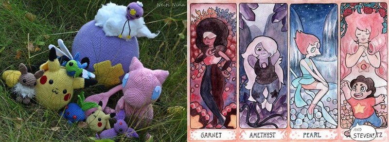 Söpöjä queerhenkisiä ja eläinaiheisia teoksia, pikkuhöpöä kuten tarroja, kaulakoruja ja muuta, mahdollisesti fanitaidetta mm. Steven Universe, Gravity Falls…