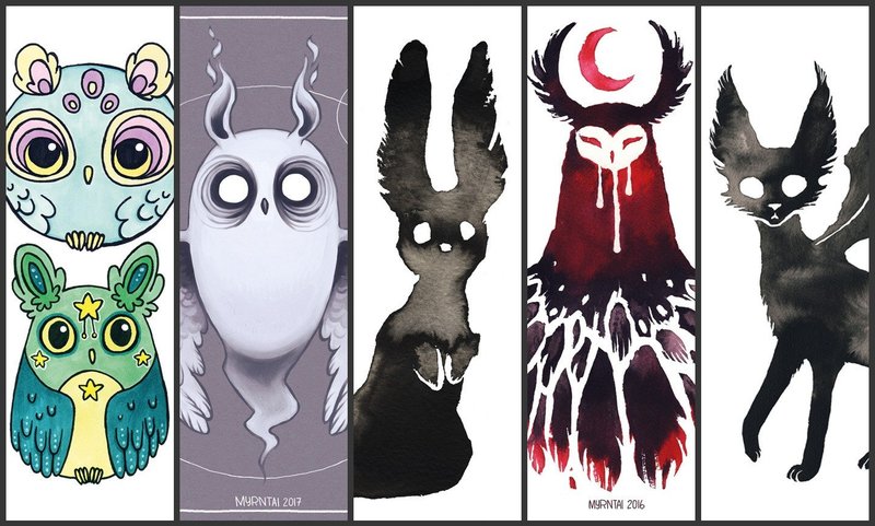 Tarjolla pöllöjä ja otuksia ties minkä muotoisia! Valikomista löytyy printtejä (A3+A4), postikortteja, kirjanmerkkejä, tarroja, kännykkäkoruja sekä sarjakuvaa.