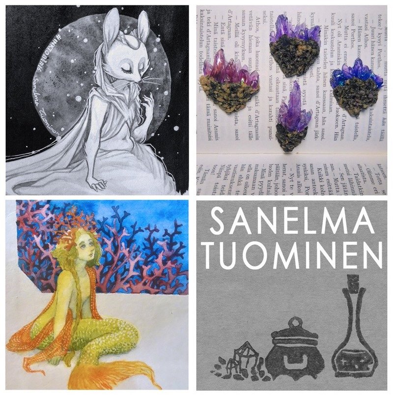 Fanarttia ja originaalitaidetta printtien, postikorttien, akryylicharmien sekä mahdollisesti kirjanmerkkien, kangaskassien ja zinejen muodossa!