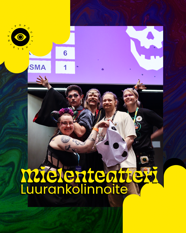 Mielenteatteri-roolipelisarjan Ropeconista tuttu Luurankolabyrintti-liveshow saa odotettua jatkoa Popcult Nightsissa! Tässä hersyvässä yhteisöllisessä roolipeliseikkailussa yleisö pääsee pelaamaan armeijaa pelottavia Pimeyden armeijan luurankoja vaarallisella tehtävällä. Leukaluut kalisevat, julma nauru kaikuu ja jättiläisnoppa pyörii — tule tutkimaan, selviytyykö juuri Sinun luurankosi tehtävältä yhtenä kappaleena?
